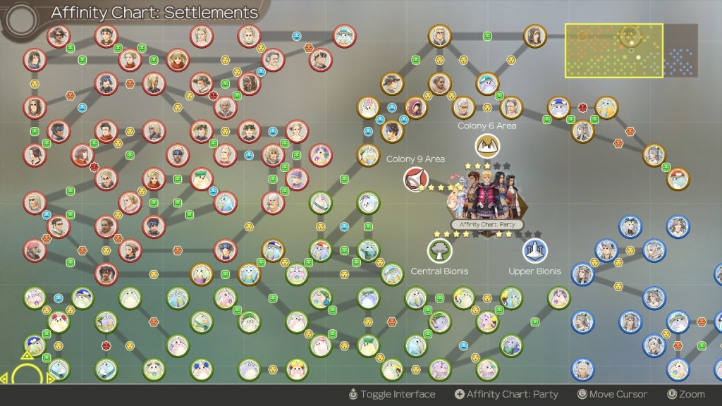 Your party works around an affinity system, wherein the more you battle together with certain party members, the tighter your bond becomes. This enhanced bond powers up the effects of Chain Attacks (your party’s super move), helps you to fight more efficiently, and unlocks sweet, heartfelt optional conversations between group members. However, you can also grow your affinity with the towns and cities you discover, along with their inhabitants.