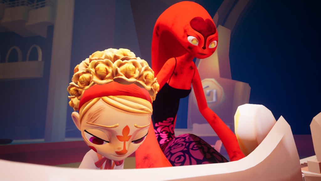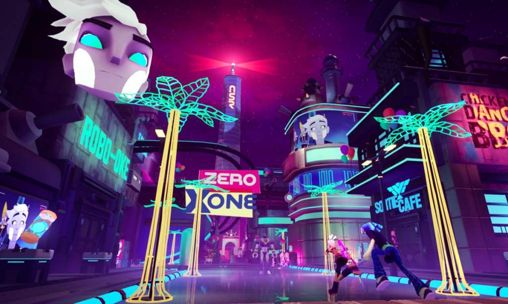When you aren’t fighting, you’re exploring the bright and flashy world of Vinyl City. I very much appreciate that optional NPC conversations and fun collectibles can be found on rooftops and behind dumpsters, but Vinyl City still feels a bit lifeless. Invisible walls gating you off are inconsistent, and the layout of the city is quite linear. Also, this is as good a time as any to mention the excruciatingly long load times that No Straight Roads is saddled with. They make traversal between city districts and boss fights a chore.