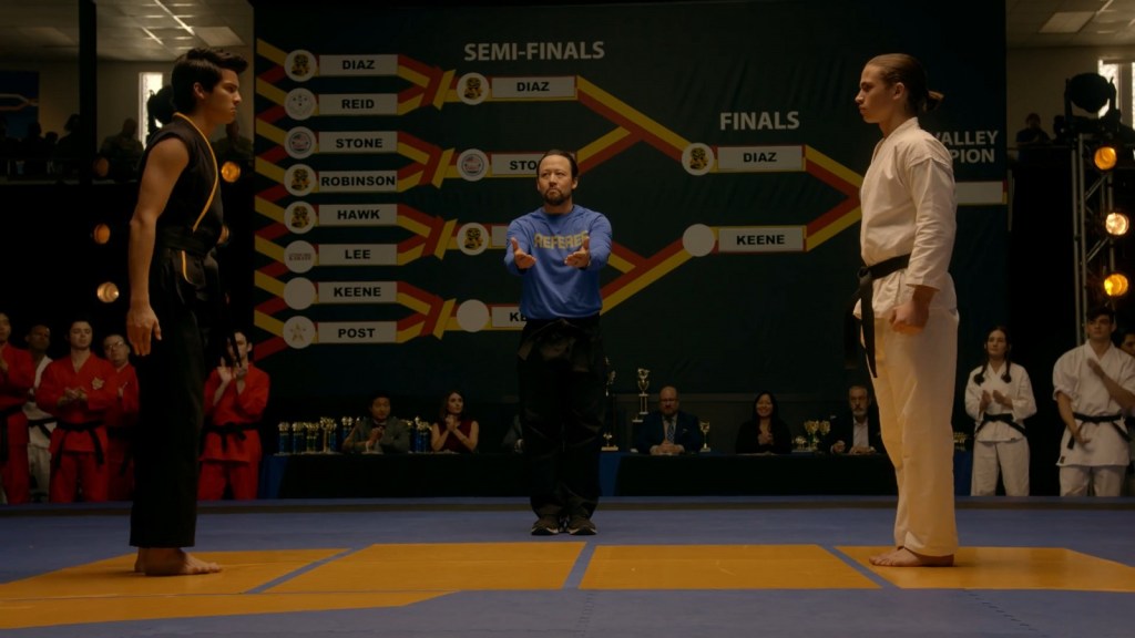 Johnny proceeds to reopen the Cobra Kai dojo as a means to relieve the glory days of his past. Miguel joins as his first student, and in the process of teaching the young kid how to fight back and strike first, Johnny sincerely starts to turn his life around. Complications arise, however, when an equally agitated and petty Daniel tries to get Cobra Kai banned from the valley, and eventually ends up taking Johnny’s estranged son Robby under his wing. Everything culminates in a showdown at the 50th anniversary All-Valley Karate Tournament.