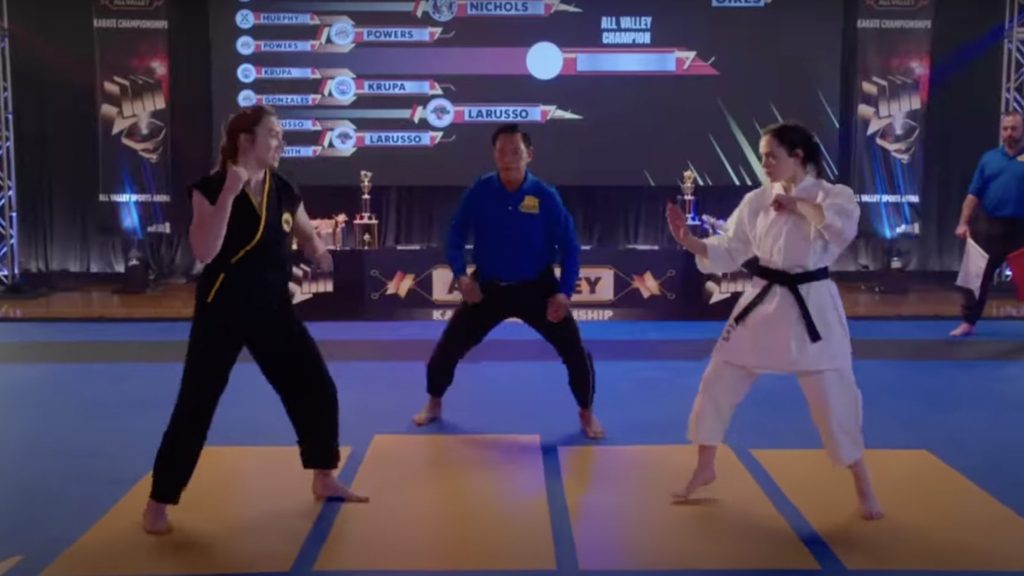 Tory, confounded by Sam’s unorthodox strategy, returns to her sensei for advice. She is told to match and overpower Sam’s aggression with even stronger aggression. As Kreese puts it, “You’ve been fighting all your life for this moment”. Reassured, Tory steps back into the ring and does exactly what she was just told, relying on her speed, height, and muscle advantage to score two points against Sam.