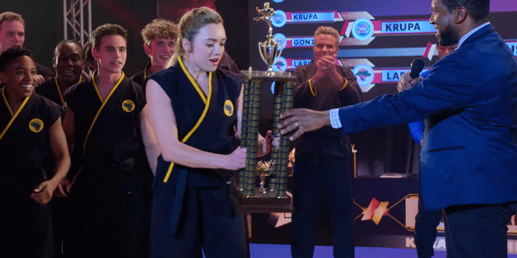 For Sam, this loss is soul-crushingly horrendous; a worst-case scenario on all accounts. Because she failed to secure the win, Miyagi-Do will now be forced to shut down, as per the bet her father made with Kreese at the end of Season Three. As Cobra Kai rises in fame, her and her friends’ karate will wither away. And Sam has spent all season believing that her fusion of Daniel and Johnny’s style would be enough to secure the win. Now, it’s clear that it wasn’t. Sam’s passion and belief in her victory was for nothing.