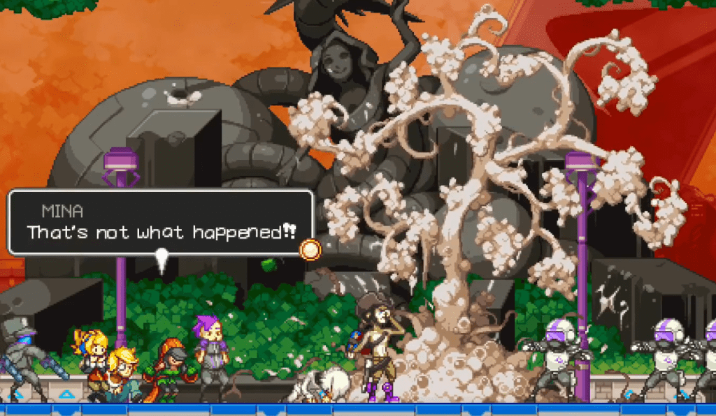 Robin reunites with Mina, who decided to come back to help Robin finish her quest, as she feels that she owes the plucky blonde too much for saving Samba. The two friends then blast their way through One Concern HQ, before eventually stumbling upon a rally being held in the assembly hall by none other than Chrome.