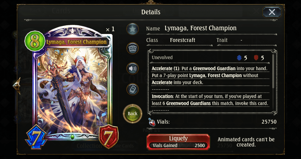 Before you even begin to make a deck (decks are what you battle other opponents with, and they are comprised of 40 cards), you first have to choose a Craft. There are eight Crafts in the game, and each one has its own distinct set of cards and individualized mechanics and techniques. Cards from one Craft cannot be used in another (unless they are Craft-free Neutral cards), but while that might sound limiting, it really helps each deck you make stand apart from the rest, and encourages experimenting with light restraints to emphasis each Craft’s gimmicks.