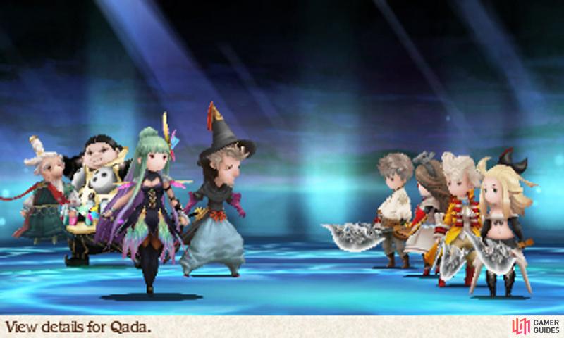 In battle, your characters can do basic RPG-type stuff. You can attack, cast spells, use items, and so on and so forth. However, you can also Brave or Default, two unique actions. By Braving, your character can act multiple times on one turn, but as a consequence, their stamina is lowered into the negatives, and they cannot act again until they have waited the number of turns they preemptively took. On the other hand, you can Default, which stockpiles stamina for use later, in exchange for doing nothing but guarding on your turn.
