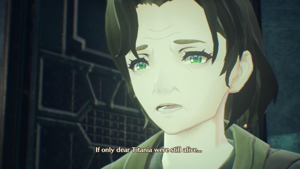 Sena yells at Shania, begging to know how she could do such a thing. Shania shouts back at her, reiterating her rhetoric. The City never had to be destroyed, but now that the execution has failed, their continued existence poses a legitimate threat to the world of death and rebirth that Shania dreams of. Once more, she tries to appeal to the party by decrying their “noble pursuit” as a fantasy that leaves the weak and defenseless behind to wither away, as their choices are too far beyond reach.