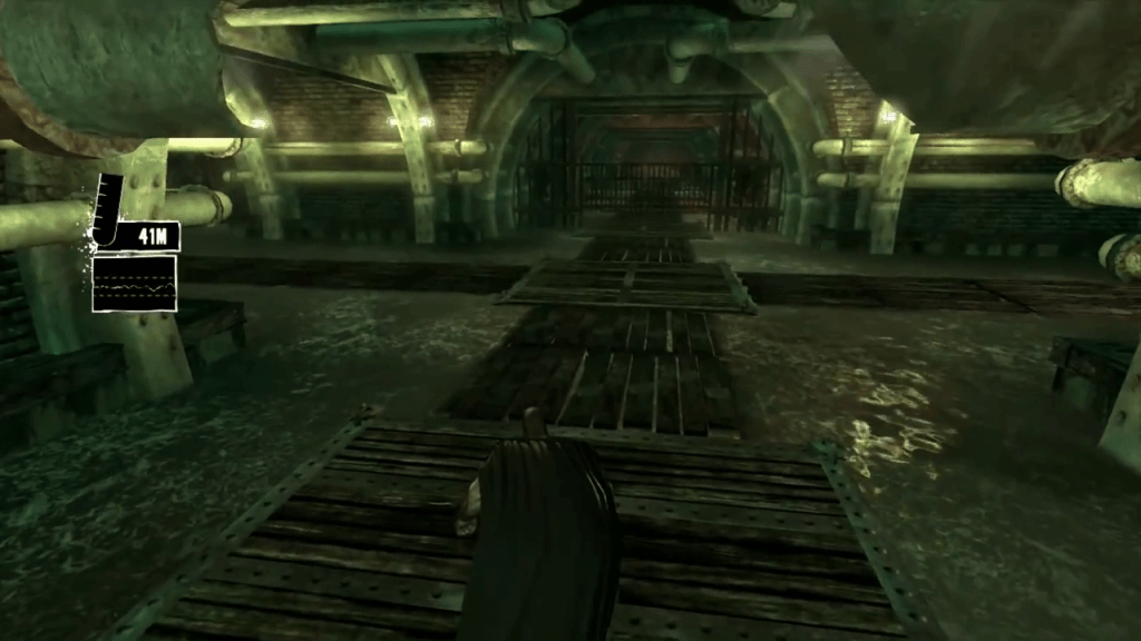 There’s actually a plethora of frightening and tense moments in this incredible game (like the nightmare sequences and just the general vibe of an old asylum), but this segment in particular is terrifying. Story-wise, I can’t even remember why you have to trek through this nightmare sewer, but for some reason it’s vital to your mission. Also for some reason, the only weapon you have to defend yourself is a simple stun attack that only holds Killer Croc off for seconds at best. The same Killer Croc who, of course, can silently swim underwater undetected, only to burst out in front of you with a loud orchestral sting, and charge to eat you with only seconds to react in time. What’s worse is when he jumps out from behind, and you have to waste a second spinning the camera back around and hope his jaws aren’t already closing on you!