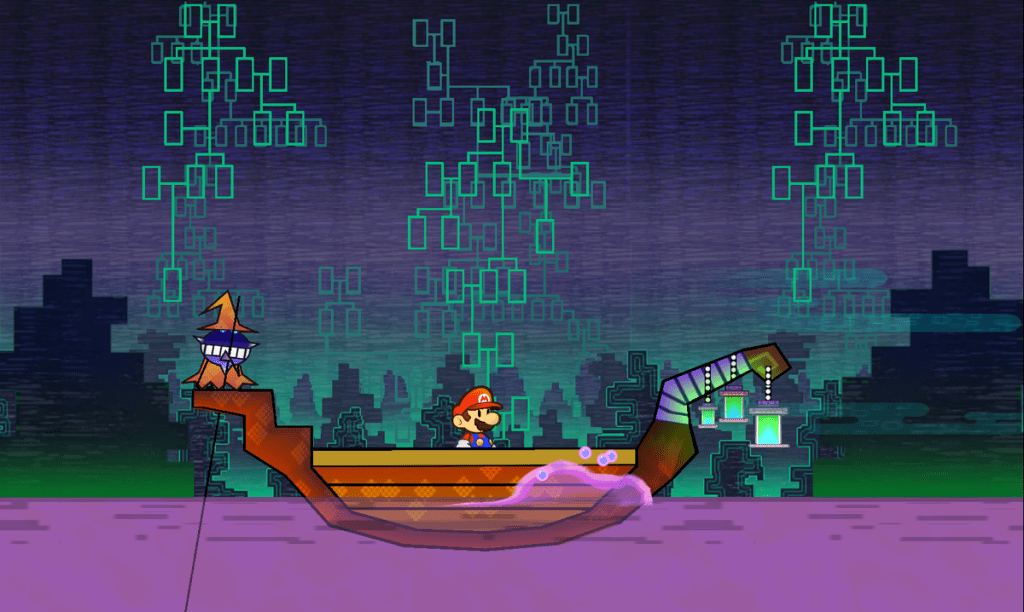 Super Paper Mario is certainly not afraid of going off the deep end (like the part where a little girl breaks her own neck and turns into a demon spider, or the part where an innocent world is purged of life and you get to explore the ruined emptiness that remains). Most of this at least stops at being “creepy”, “unsettling”, and “why is this in a kids game”. But then you have to dive into the murky dark depths of the River Twygz, which, pun aside, involves slipping into darkness as the music distorts and starts playing backwards, and skeletal hands reach from the walls and floor to grab you and pull you to your death. I’m pretty sure the people who rated this game “E for Everyone” stopped about an hour in!