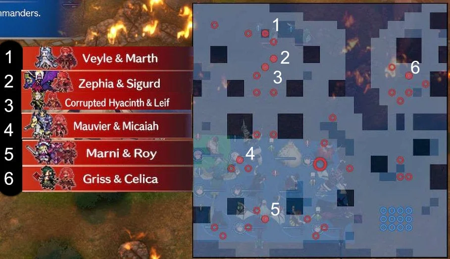 The entire enemy army has come out in full force for this battle of the ages. The corrupted and mind-controlled King Hyacinth, the Four Hounds of Sombron (Zephia, Mauvier, Marnie, and Griss), and the Fell Dragon’s own daughter and leader of the army, Veyle. And, of course, they are each packing their own Emblem Rings allowing them to enter the Engaged Status. Also, they’ve got an army of over 25 additional generic soldiers, plus a highly-damaging dragon mini-boss on their side!