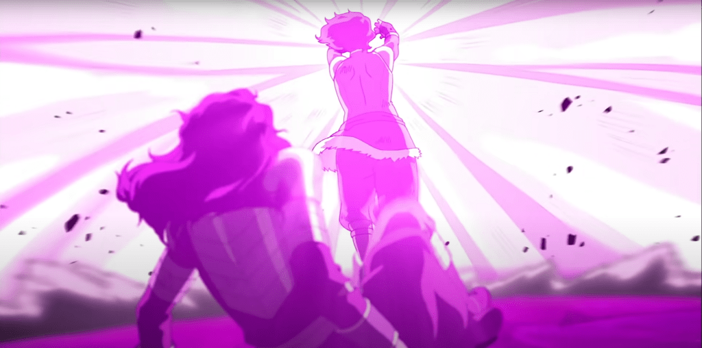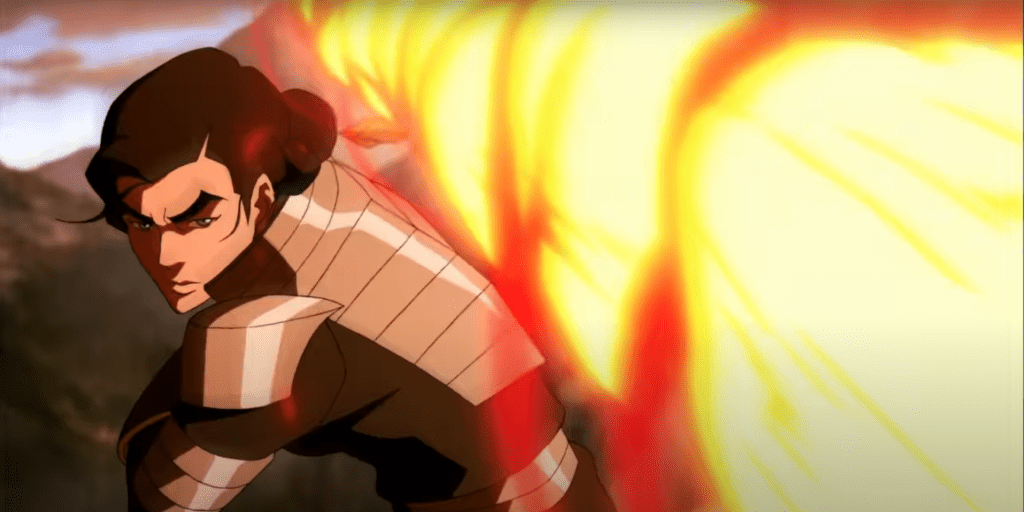 After so many months of struggling to recognize her own internal failings, Kuvira is finally ready to take accountability for everything she’s done. But because of that new sense of heightened awareness of her many crimes, Kuvira looks at Guan and sees only red. He is a reflection of her Great Uniter persona, the continuance of the suffering caused by the Earth Empire she founded, and in her desperation to atone, all Kuvira can think to do is kill him and end it all for good.