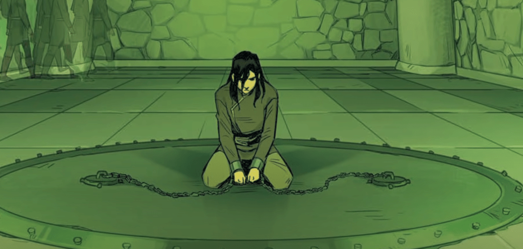 In light of this, Kuvira finds herself facing down a surprise visitor at her secluded cell: Korra.