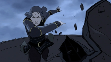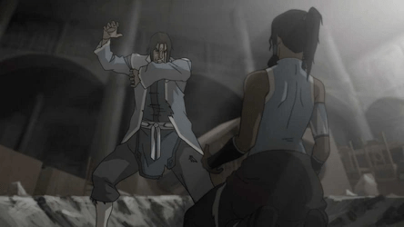 Before the finals can truly end (and with Korra’s opponents obviously cheating and bribing the ref), the match is interrupted by an Equalist attack. Amon de-bends the enemy team and makes a grand speech, before attempting to flee the scene. He is pursued by Korra and Lin, who nearly catch him but are ultimately unable to stop his flight.