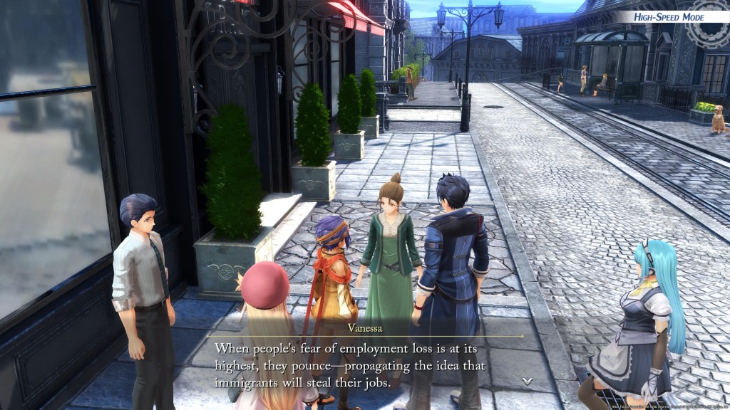 And pivoting somewhat relatedly from Melchior, it wouldn’t be an article on this blog if I didn’t mention the soundtrack and voice acting. Melchior in particular has a just amazing vocal performance, but actually most of the characters in this game have great performances. The Trails series has never faltered with its voice acting in the past, but this game is really a highlight of the series regardless (my favorites probably being the voices for Van, Agnés, and intrepid reporter Dingo Brad). Also, the soundtrack is a real banger. I’m not sure I could say its better than any other game in the series, but it’s definitely not worse. All the Trails games have good music!