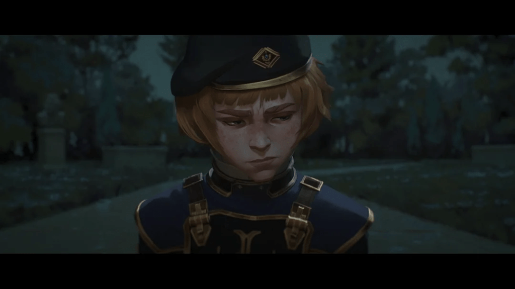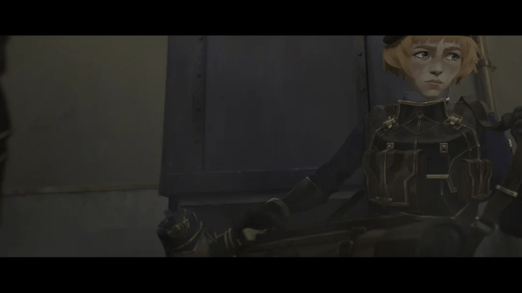 At this point, Caitlyn has basically declared war on Ambessa by choosing to side with Vi over her. It’s building up to a big showdown between the Enforcers of Piltover and Ambessa’s Noxian forces, and it isn’t looking good for Piltover. However, even though the Noxian victory is all-but-assured, many Noxian soldiers will still die in the process of seizing Piltover’s Hextech. Maddie, as a loyal Noxian herself, tries to keep this from happening in this scene.