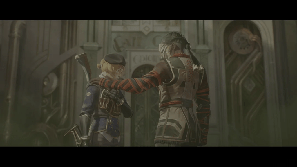 Ambessa approaches, and Maddie performs the honorary Noxian salute to her true master. Ambessa, in turn, puts an approving hand on Maddie’s shoulder, a general congratulating her deceptive, masterful spy on a job well done.