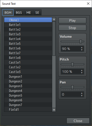 And here’s what the basic “Sound Test” looks like. As you can see, this program comes with a lot of music and sound effects ready-to-go for your first few creations!