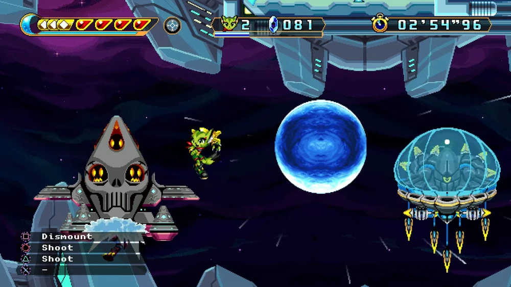 For being the level that kicks off Act Three, it’s unfortunately a little bit mid. But that’s “mid” by the standards of Freedom Planet 2, so it’s still an enjoyable and fast-paced level that is fun to play! I like the quick speeds, the set pieces of grinding on rails in the vast depths of space, and it does a good job evoking the feeling of busting your way into the main villain’s stronghold. It’s even got a decent boss at the end. I just don’t totally love the introduction of this weird pinball-like mechanic that didn’t land for me, and some of the outside segments are too easy to fall down during (granted, at least you just lose health and return to where you fell, you don’t die).