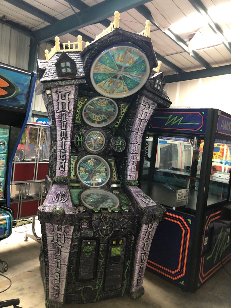 For a full disclosure, I don’t actually enjoy this game that much. You just sort of hit the button and hope that you move up to the next spinner, and then you do it again. If you don’t move up, the game is over. It’s harmless. However, this machine is infamous for having an extremely loud and campy announcer using his best ‘Suspiciously-Creepy Haunted House Owner‘ voice to declare the rules of the game. He has such a unique cadence that his oft-repeated phrase of “WELcome to my HAUNTed HOUSE!” is forever baked into my brain.